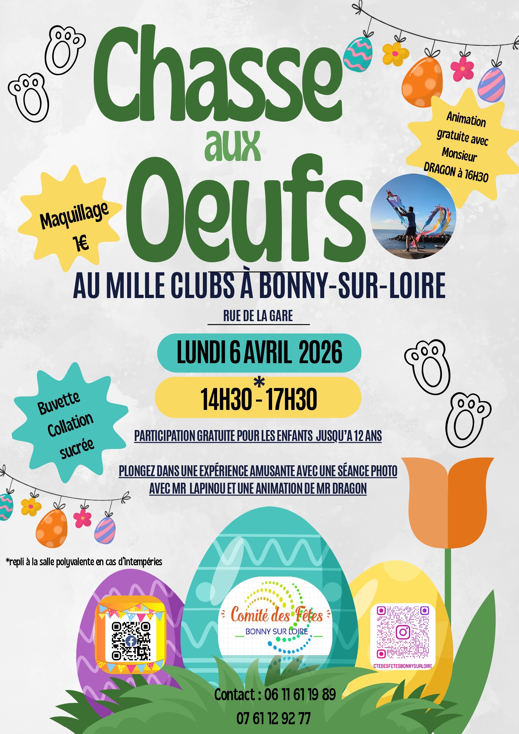 Nous vous donnons rendez-vous le lundi 6 avril 2026 au Mille Clubs pour une grande chasse aux œufs pleine de surprises 🎉🐣