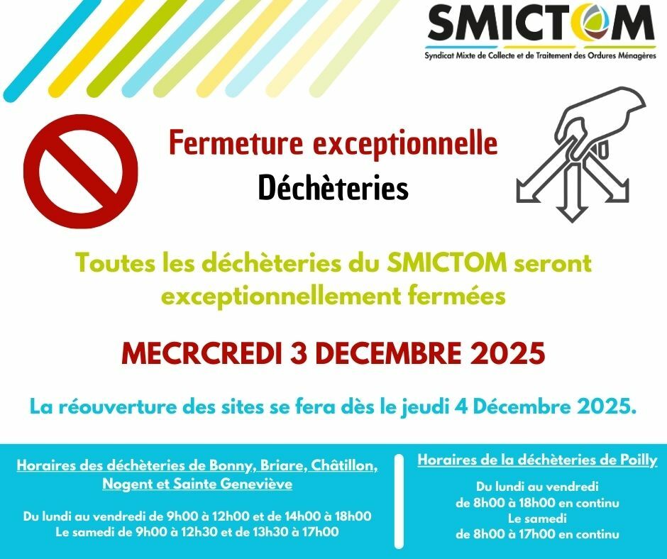 SMICTOM Fermeture exceptionnelle Déchèteries