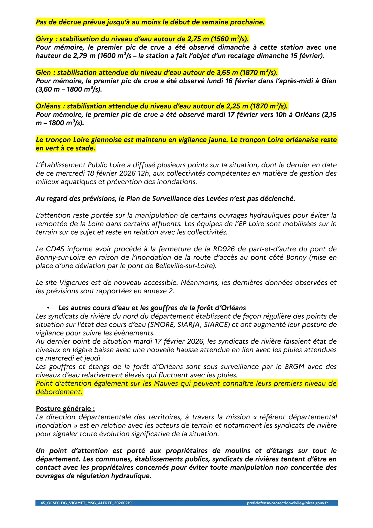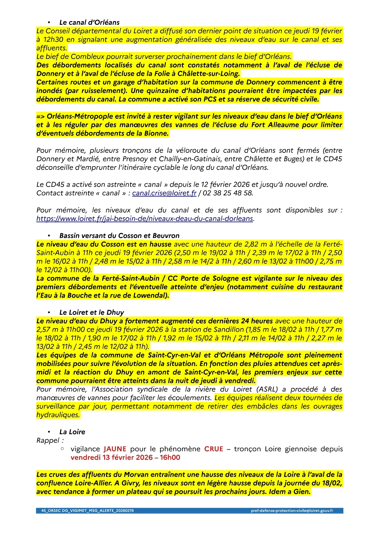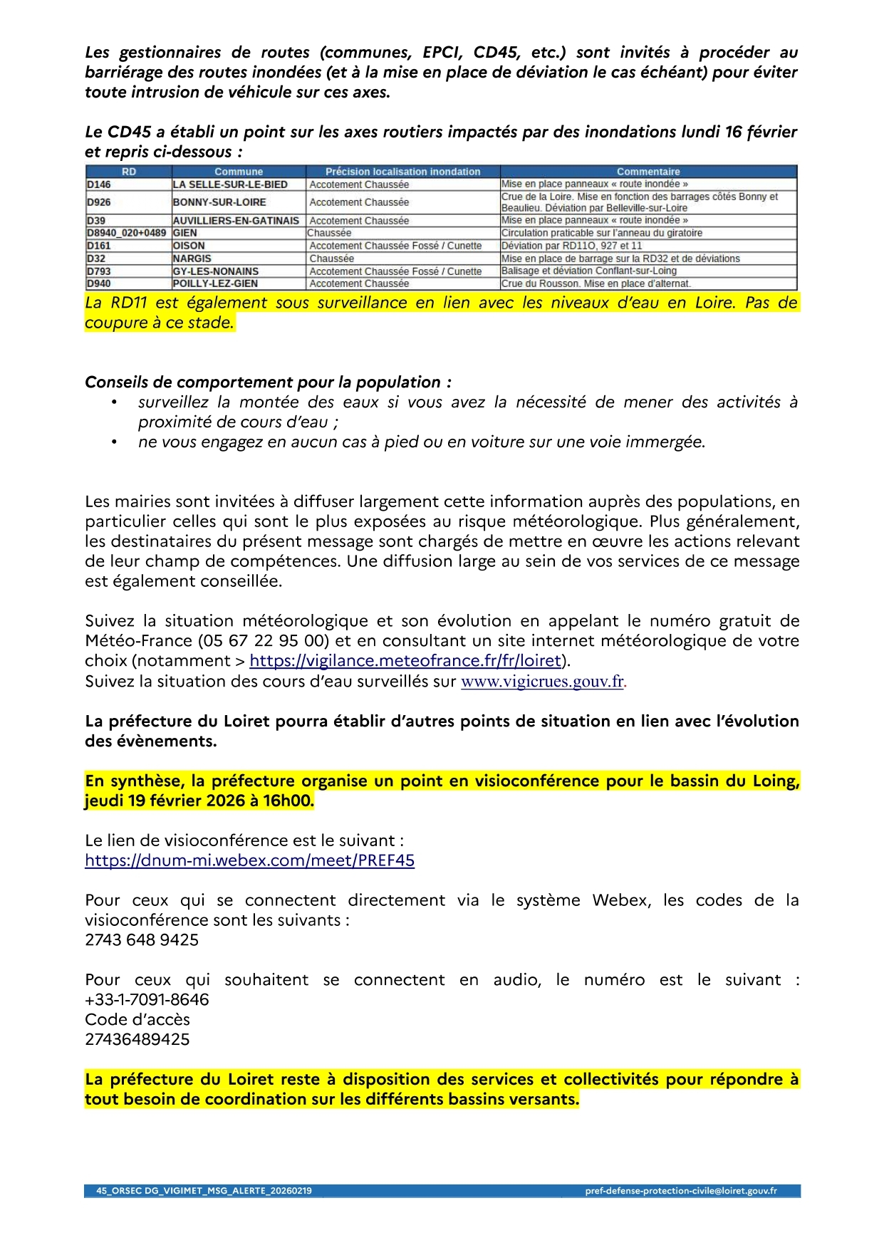Vigilance JAUNE PLUIE-INONDATION Actualisation des informations au 19 février 2026