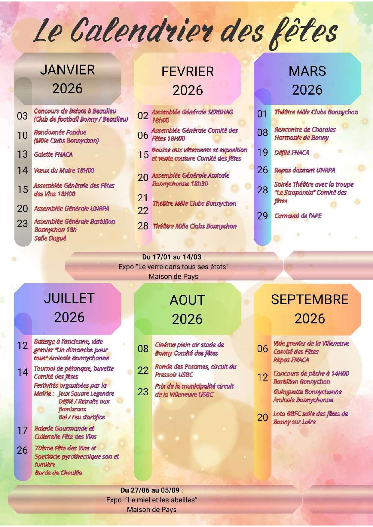 Calendrier des Manifestations 2026 de Bonny-sur-Loire