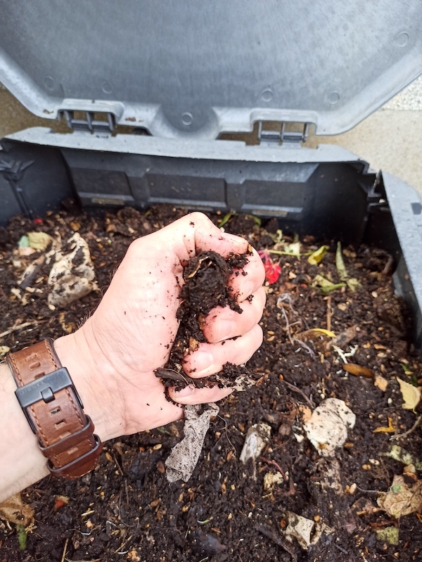 Vous pouvez utiliser votre compost lorsqu’il est mûr, autrement dit lorsque la matière est totalement dégradée. Le compost mûr présente un aspect homogène, une couleur sombre et une odeur de forêt.